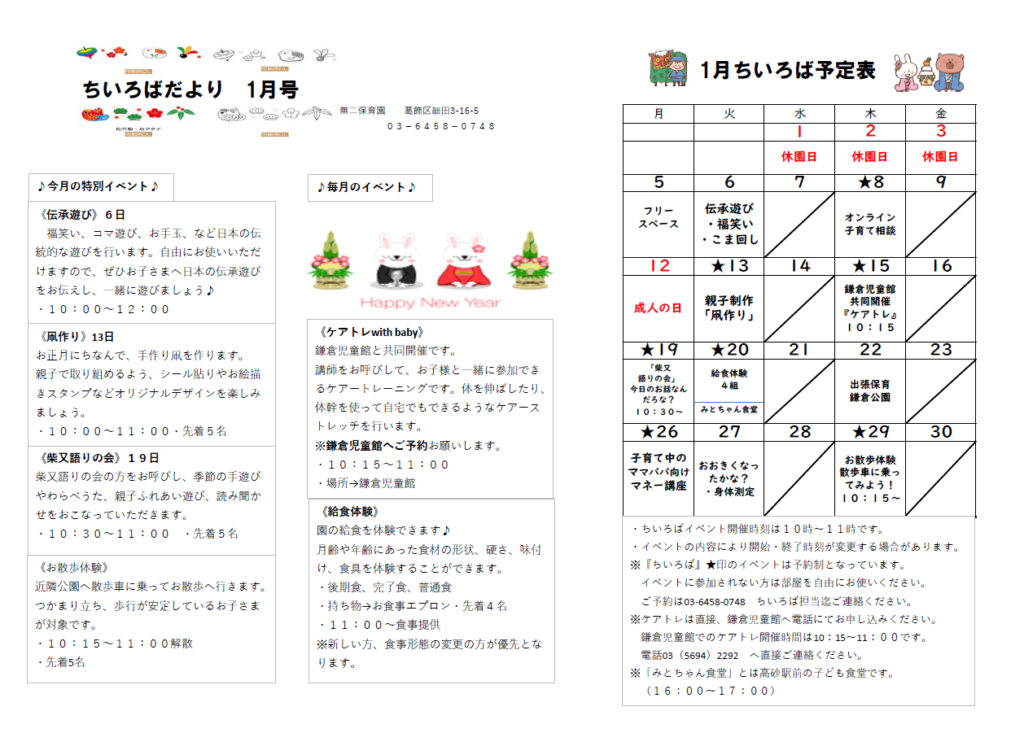 1月の「ちいろば」たより