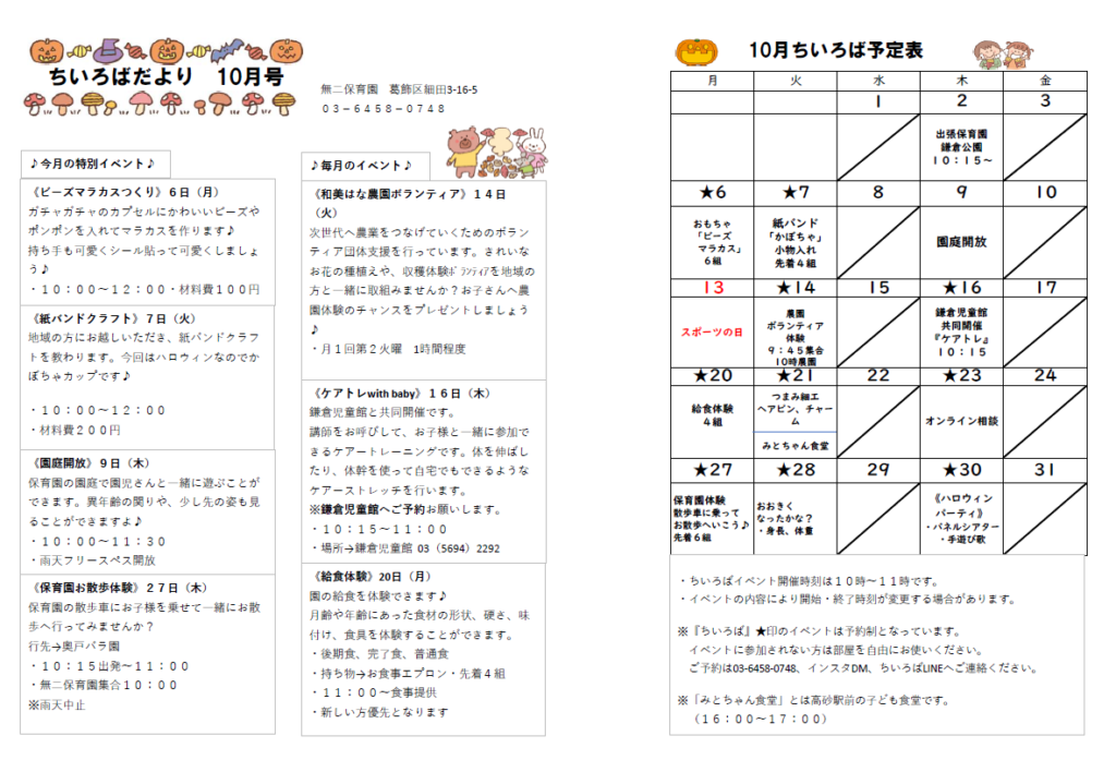 10月の「ちいろばたより」 子育て広場2025年09月20日